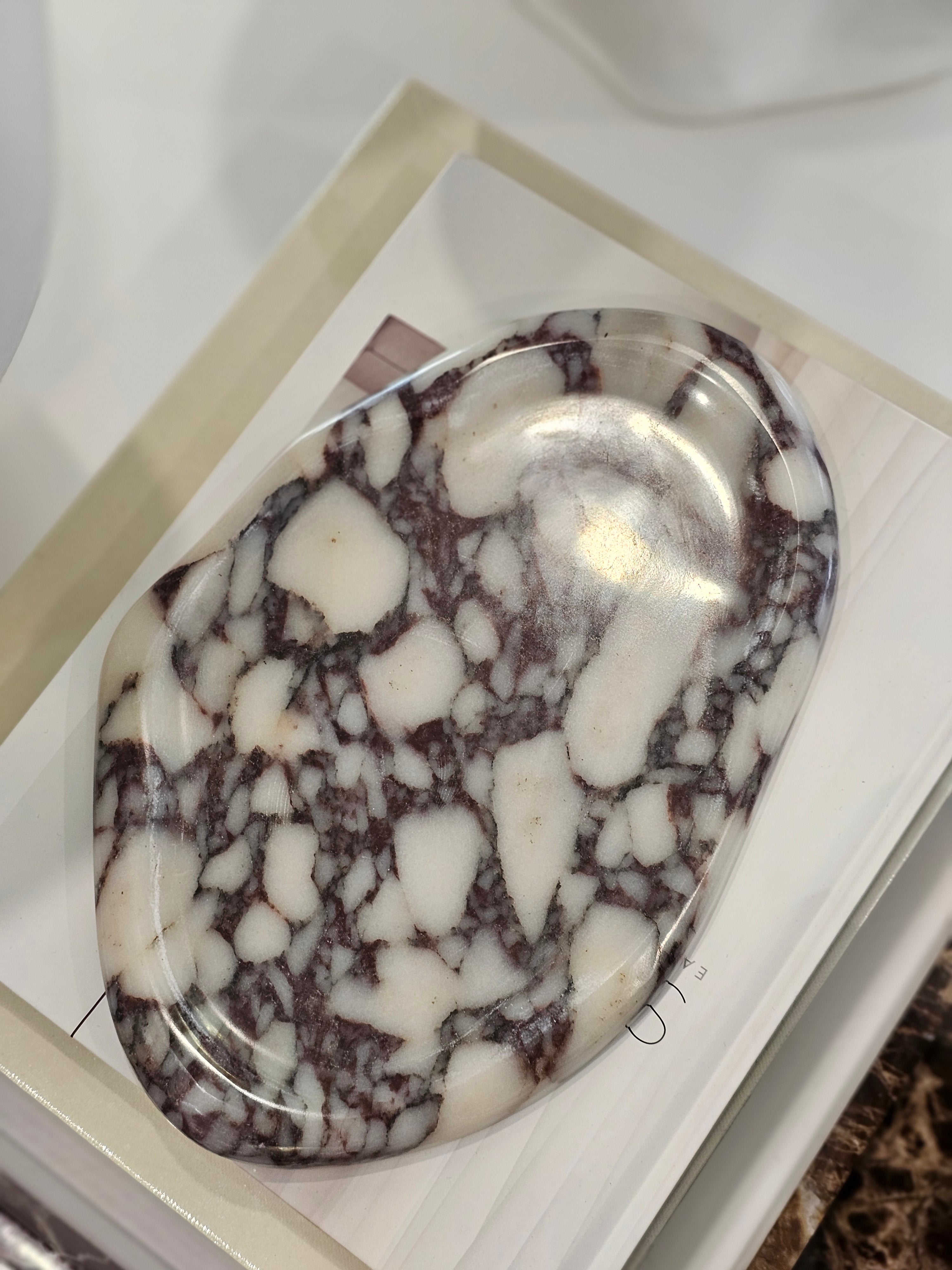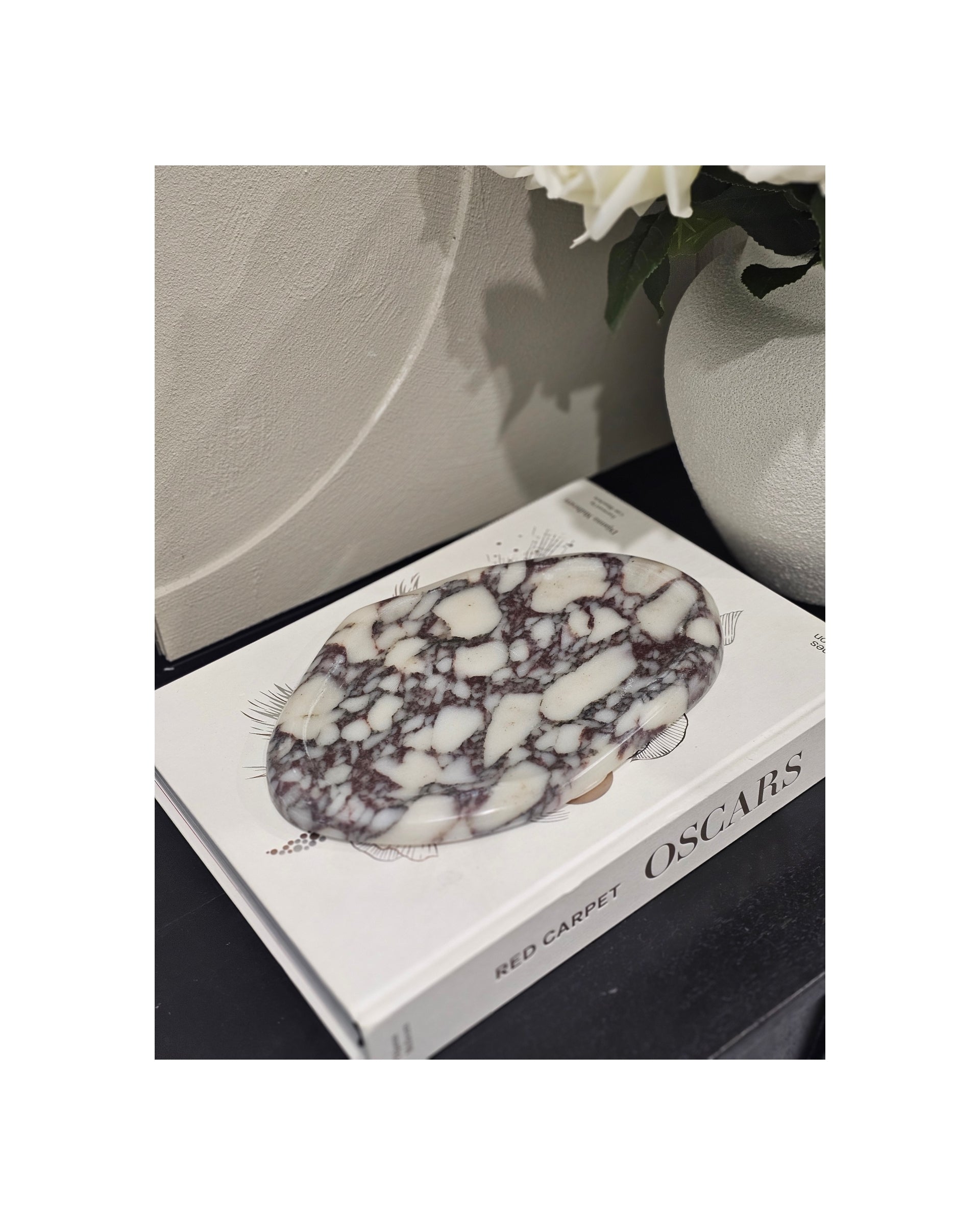 Expertly crafted from Calacatta marble, the Calacatta Violet Marble Tray is a beautiful addition to any home. With its unique, irregular shape, Made from high-quality stone, it is not only visually stunning but also durable and long-lasting. Elevate your decor and with this luxurious tray.
