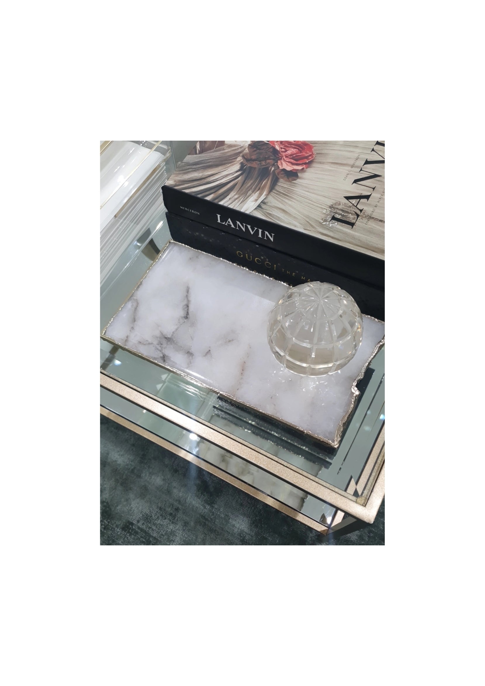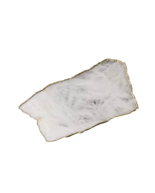 - This stunning white crystal platter is polished to reveal its naturally shiny surface