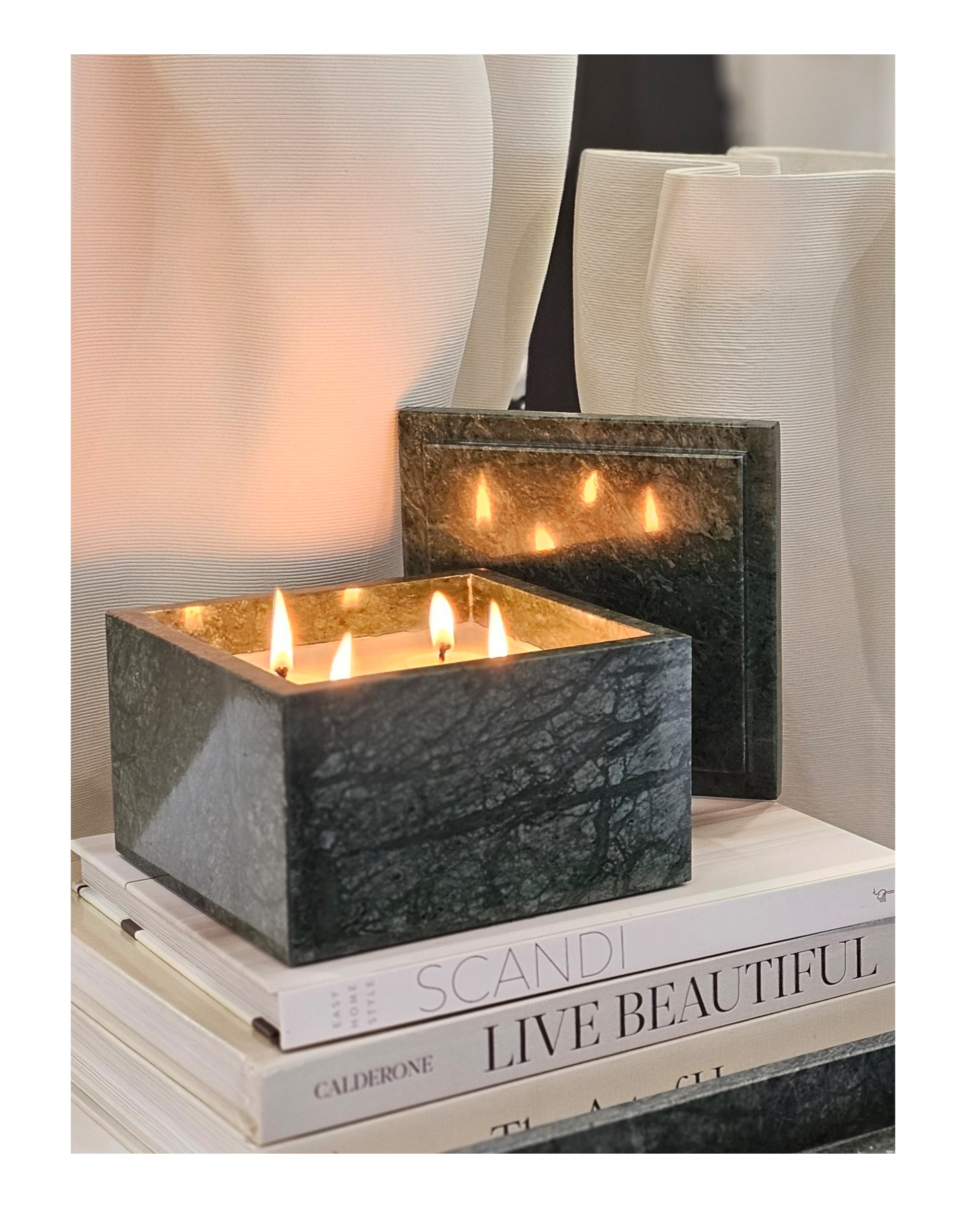 Experience the epitome of luxury with our Namara emerald marble stone candle The amazing Arabian oud scent will illuminate your space and create a relaxing atmosphere. Made with high-quality ingredients, it will bring elegance and serenity to any room. Indulge in the perfect blend of style and aroma. Our beautiful jars come with lid and is a stylish and perfect addition after use.