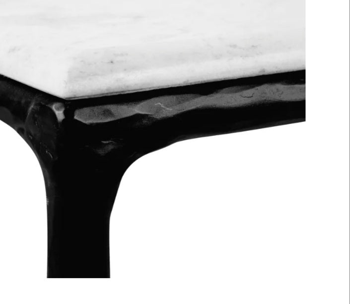 Timelessly elegant, our Luxor collection merges the rustic sensibility of a hand forged solid iron frame with a rich counterpoint of organically smoothed curves in white marble, sourced from Greece. The fine and elegant silhouette of this design allows for practical adaptability in creating a sense of air in your space. Each piece is individually hand crafted by artisans to reveal an imperfect and organic texture.