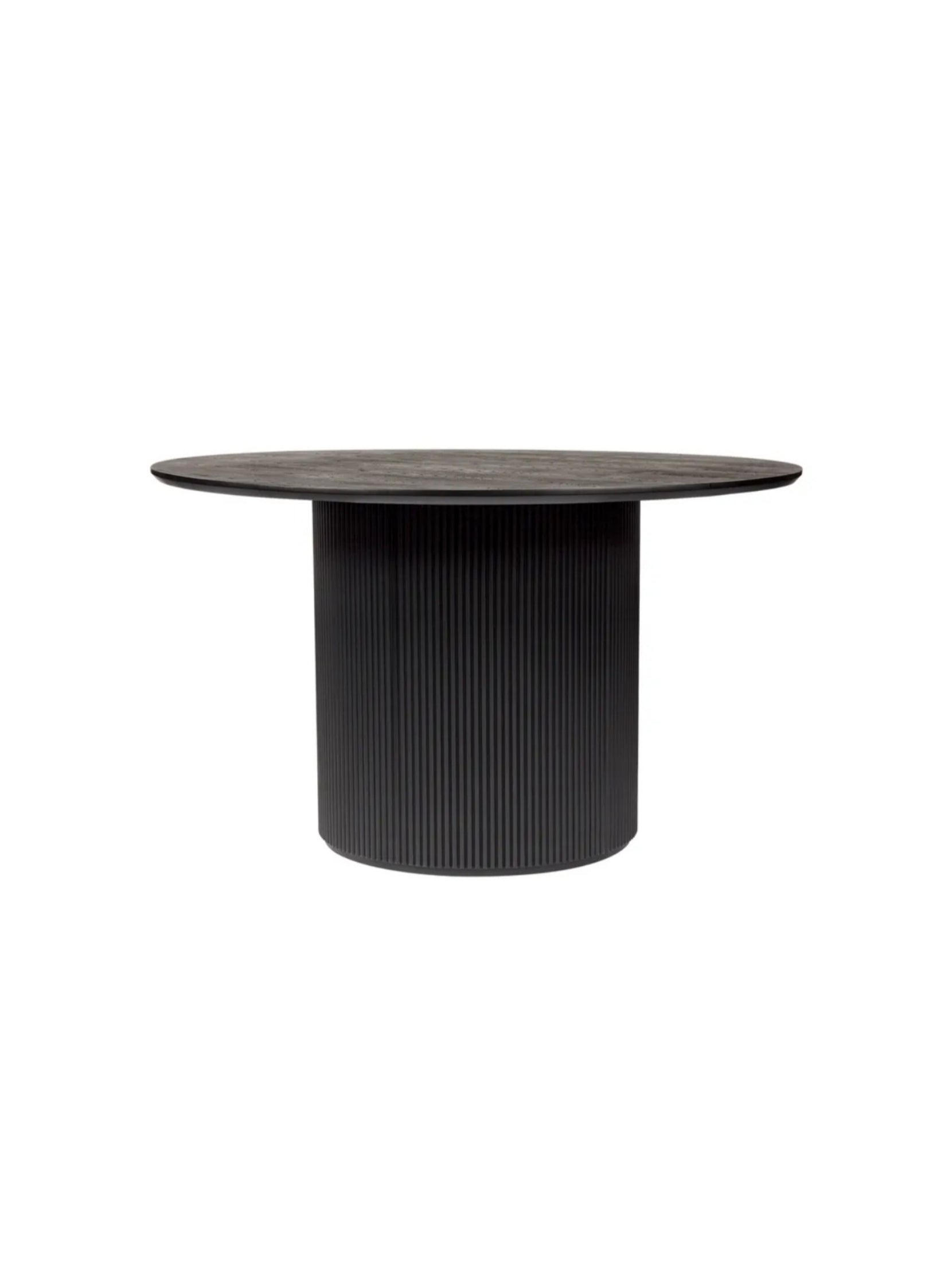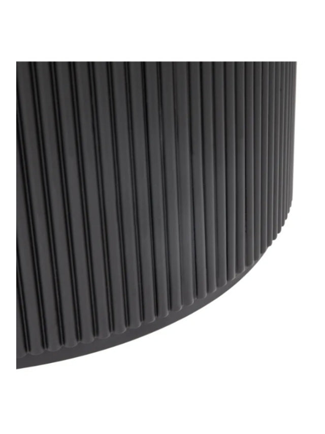 - Features a smooth round table top curving to a beautiful ribbed cylindrical base.