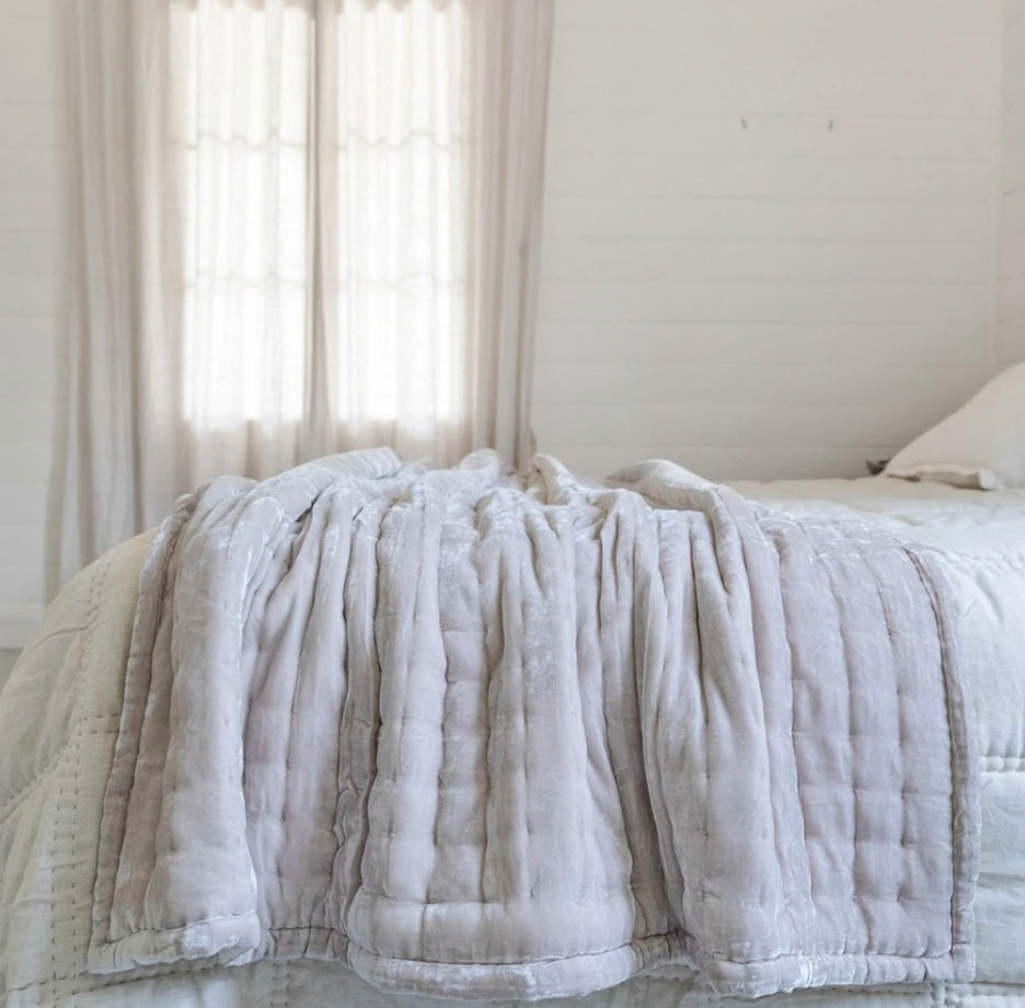 Roman Silk Velvet Throw - Oyster