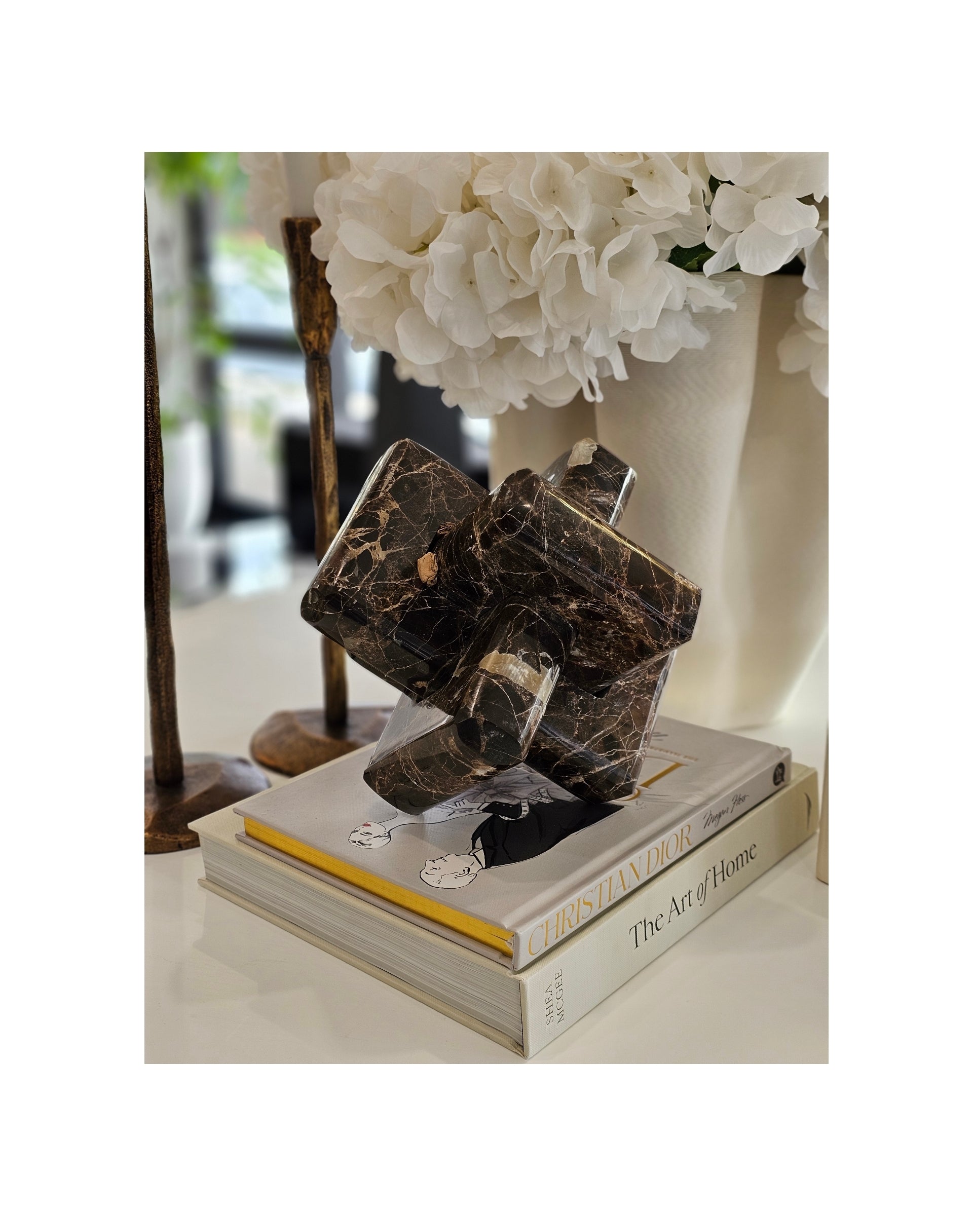 This Brick large brown marble sculpture showcases stunning craftsmanship and intricate details. Each piece of marble is individually hand-carved and polished to create a unique work of art. Perfect for adding elegance and sophistication to any interior space.