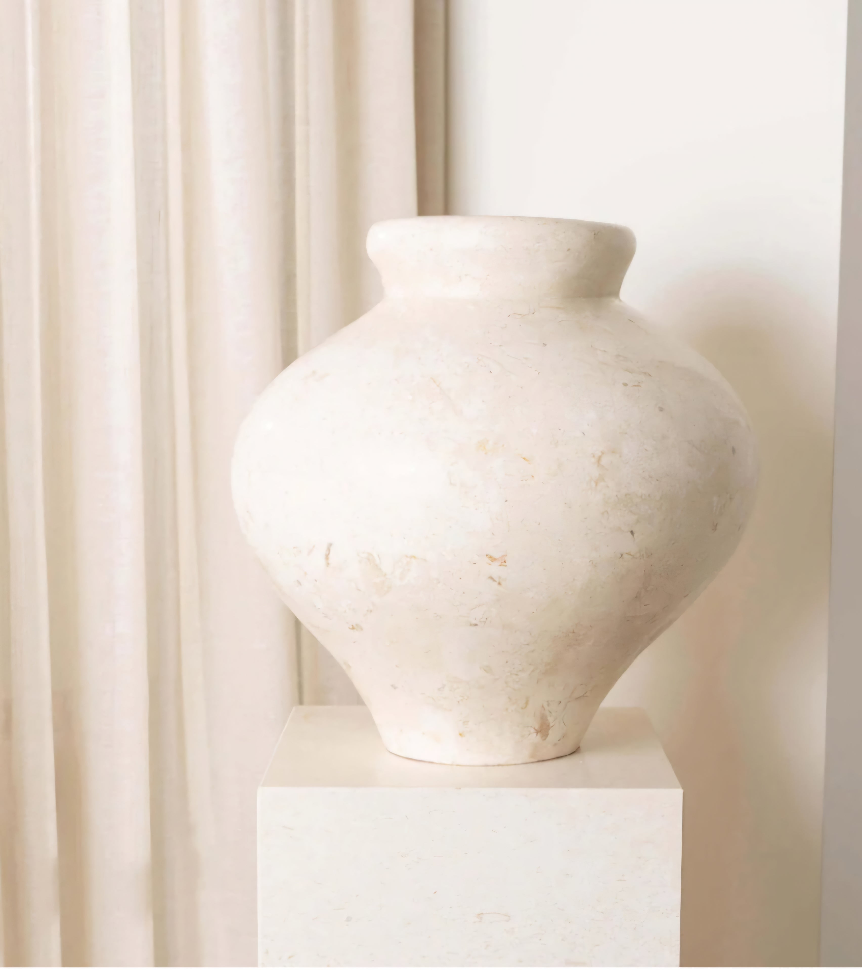Classic and timeless, our Laguna Vase has been crafted with an intentionally irregular form mirrored from the hand drawn design. Each intricate natural stone tile has been skilfully aligned showcasing our signature Fossil Stone artistry.